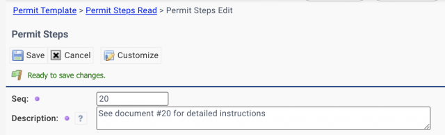 Documents can be integrated into permit steps in the coming release of R2026 (January 2026). For instance, document "Doc-20" is referenced in step 20 description in the screenshot below. Follow the processes below to integrate docs into step descriptions: