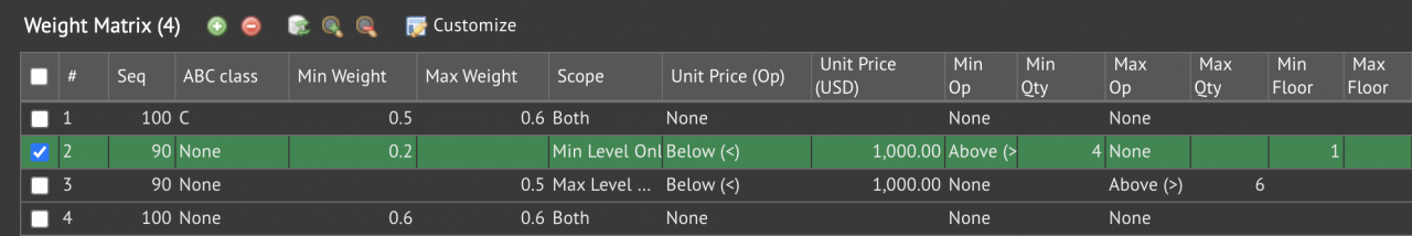 The min/max weight scaling can be parameterized based on unit price, new min and max stock levels in the coming release of R2025e (July 2025).