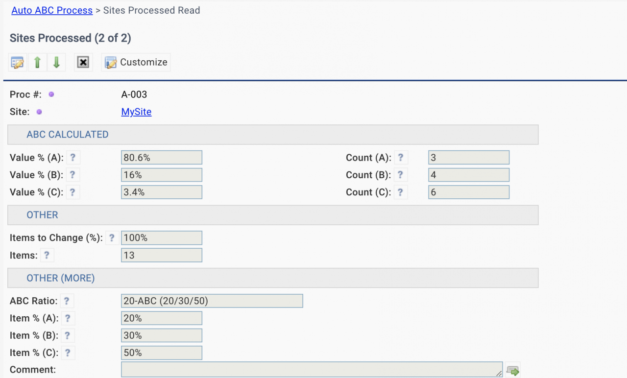 - A date range of historical data to calculate new ABC classes. The date range will be determined based on your business requirements.