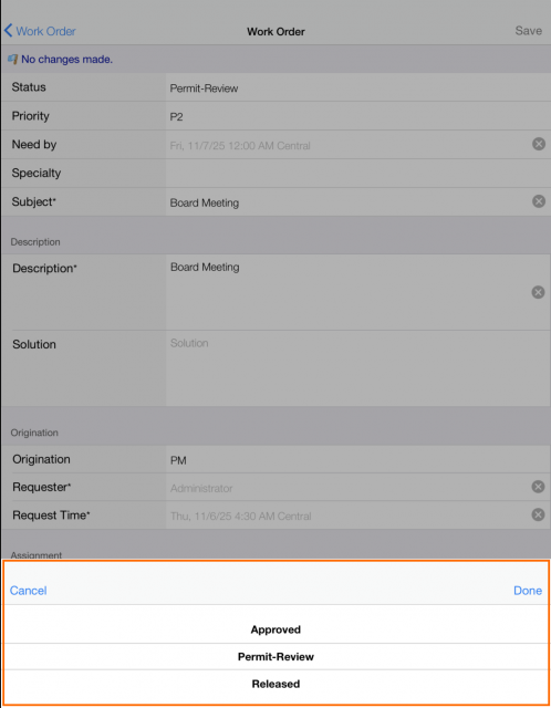 Editing a dropdown field may cause a dropdown list to open and close quickly in Calem Mobile. It is caused by iOS updates in iPads. There are options to address the issue. An updated release of Calem Mobile is available for release R2025h, or as a patch for now.