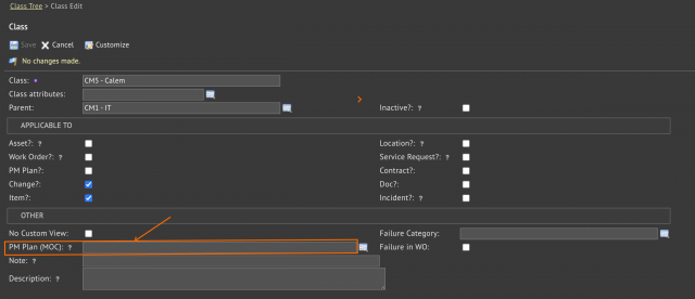 If no PM Plan is associated with a change class or its parent class, a boilerplate PM Plan may be associated with the site or company of a change (screenshot below).