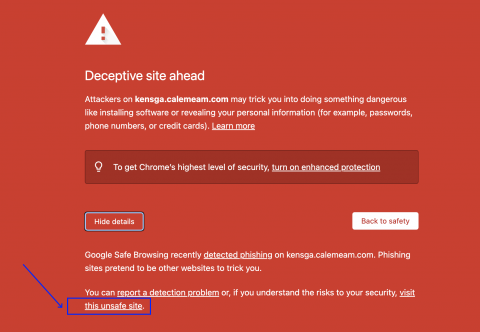 It was Friday and the last working day of the year of 2022, the home page of Calem website (1st screenshot below) didn't show. Instead, a red warning blocker (2nd screenshot below) showed up when visiting Calem website (calemeam.com). The red blocker page also showed when visiting Calem cloud service such as demo.calemeam.com. It caused a panic at our office because we have not seen this before.
