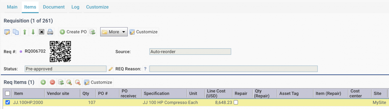 - Click a requisition line to open it.